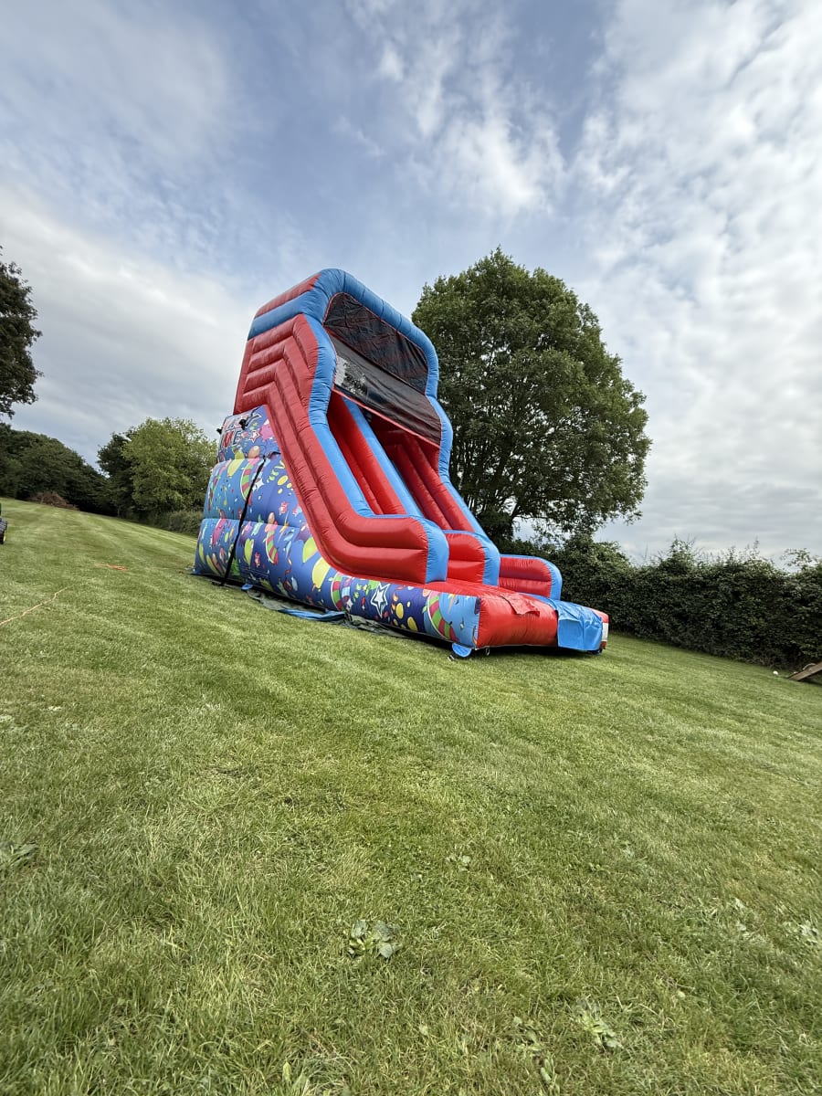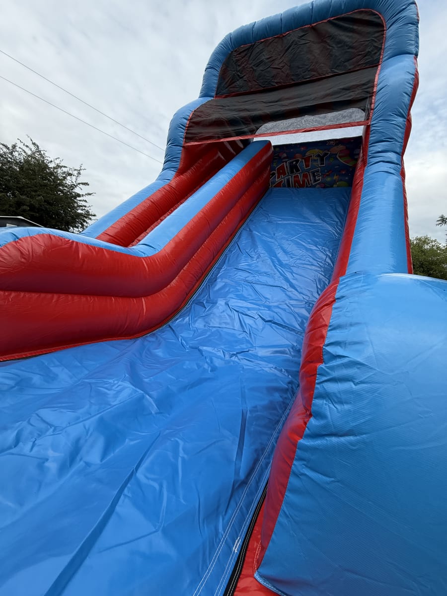 Looking for a show-stopping attraction for your next celebration? Our Bouncy Castle Hire 10ft platform Slide Party Time 20x12x19ft in Ipswich, Colchester, Clacton, Felixstowe, Kesgrave, Woodbridge, Stanway is the perfect way to bring excitement, laughter, and unforgettable memories to your special day! Whether you’re planning a birthday party, wedding, school event, or local fete, this vibrant red and blue slide is guaranteed to stand out and delight guests of all ages. 🏰