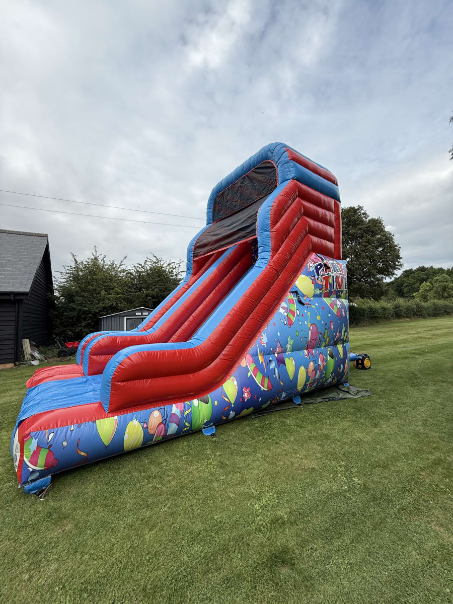 Take the stress out of party planning! With our reliable Bouncy Castle Hire 10ft platform Slide Party Time 20x12x19ft in Ipswich, Colchester, Clacton, Felixstowe, Kesgrave, Woodbridge, Stanway, we deliver, set up, and collect the slide at your convenience—leaving you free to enjoy the celebration.